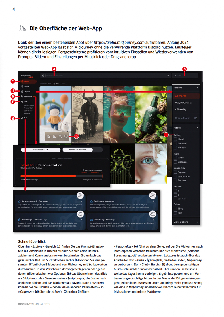 Wichtige Funktionen der Midjourney Web-App umfassen: