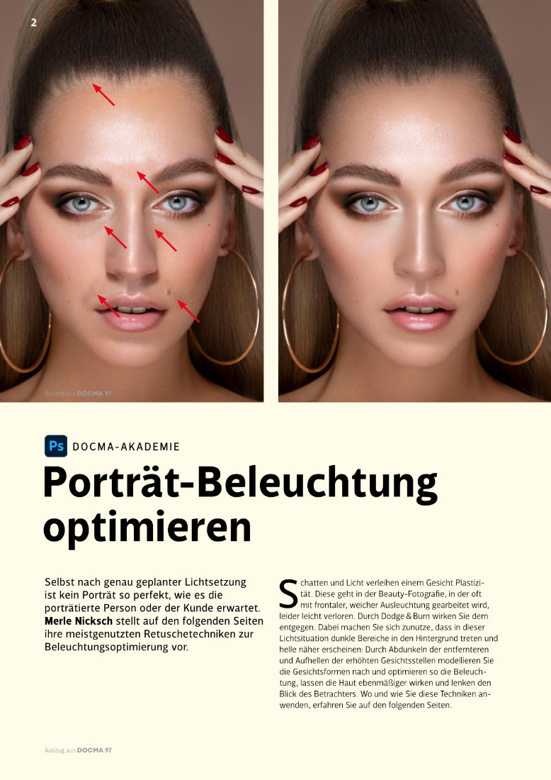 Selbst nach genau geplanter Lichtsetzung ist kein Porträt so perfekt, wie es die porträtierte Person oder der Kunde erwartet. Im Kapitel „Porträt-Beleuchtung optimieren“ demonstriert die Fotografin und Retuscheurin Merle Nicksch ihre bevorzugten Retuschetechniken zur Beleuchtungsoptimierung von Porträts.
