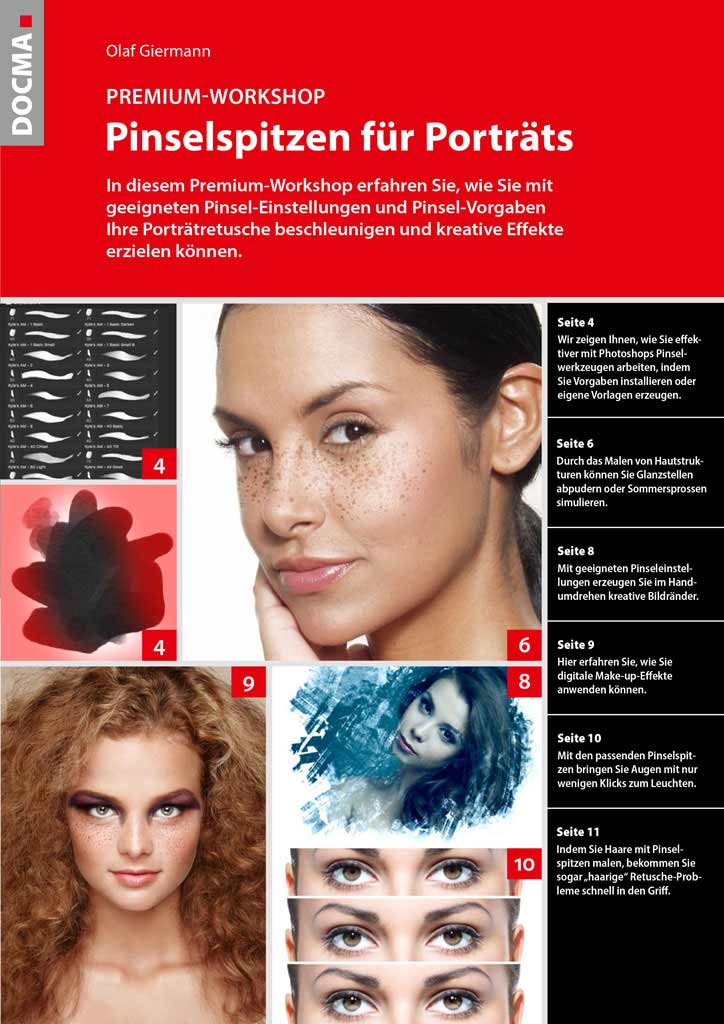Wie Sie mit Pinsel-Einstellungen und Pinsel-Vorgaben Ihre Porträtretusche beschleunigen und kreative Effekte erzielen können. | Olaf Giermann | Premium Workshop 83 | E-Paper, 11 Seiten.