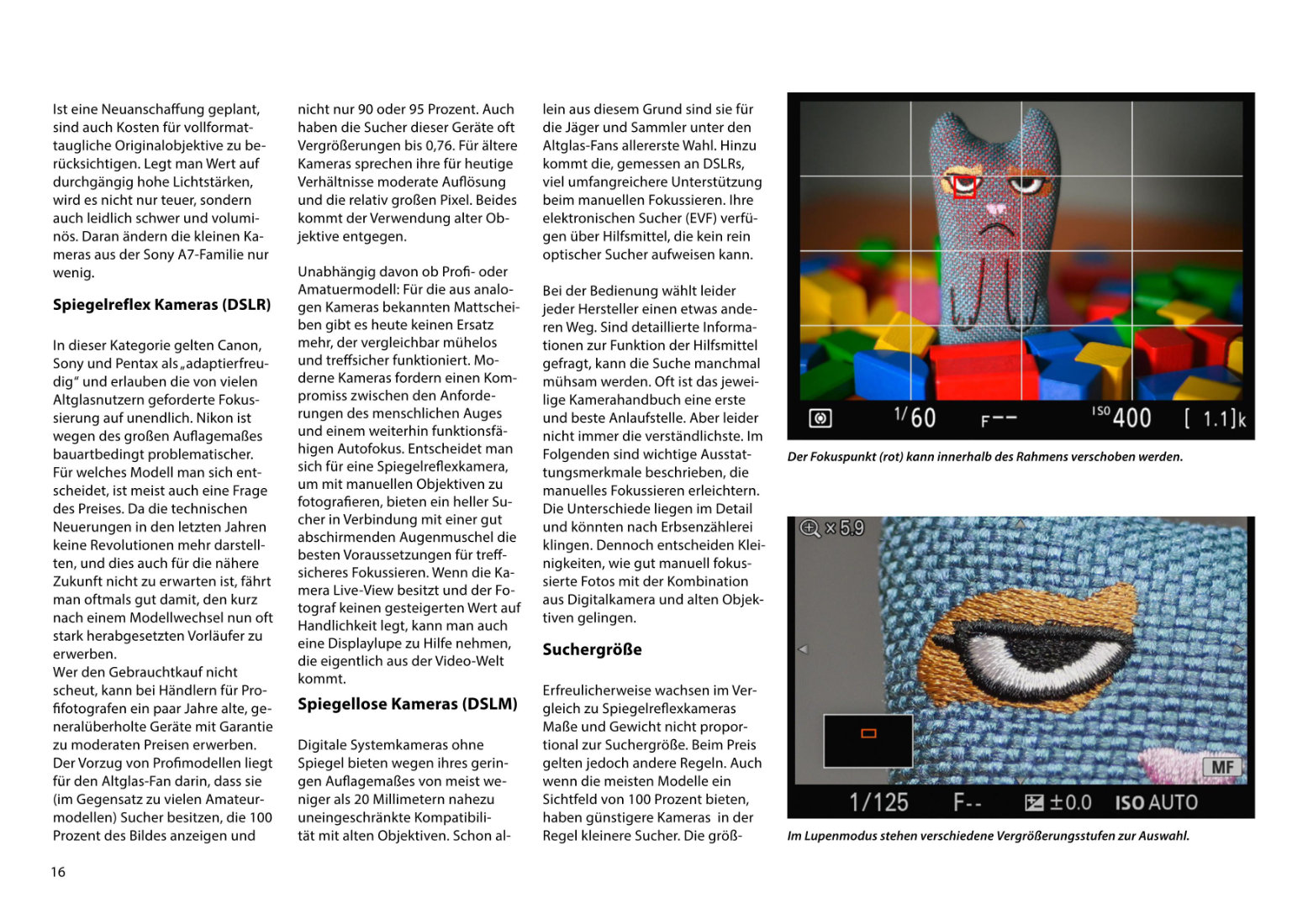 114 Exkurs: Erste Schritte Erfahrungen mit Spiegelreflexkameras und einer Spiegellosen ohne Sucher
