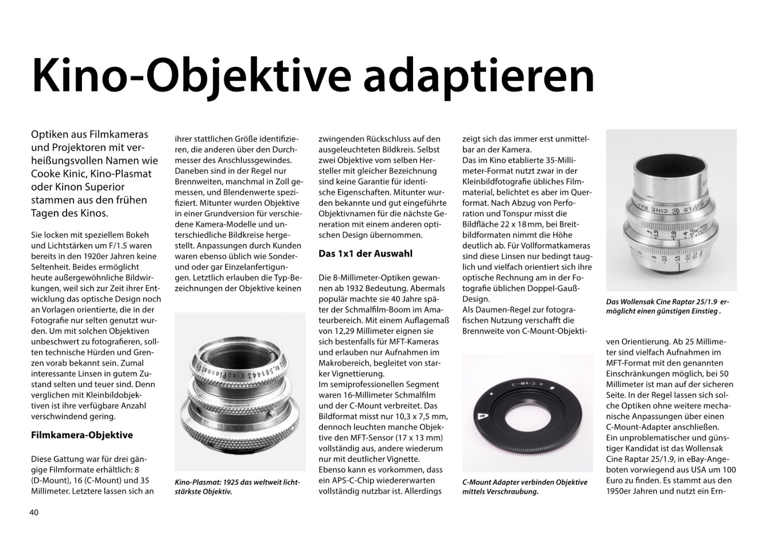 40 Kino-Objektive adaptieren Diese Optiken können reizvoll sein, stellen aber spezielle Anforderungen