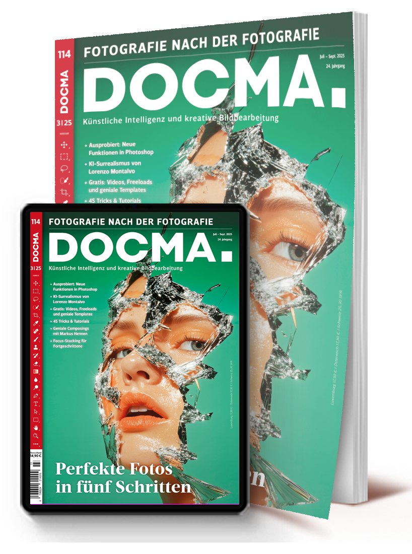 Lieferbedingungen: Die Bezugszeit für den ePaper-Upgrade ist an das DOCMA Printabo geknüpft und verlängert sich zusammen mit der DOCMA Printausgabe jeweils um ein Jahr, sofern es nicht bis 4 Wochen vor Ablauf der Bezugszeit in Textform gekündigt wird. Zur Kündigung genügt eine formlose schriftliche Mitteilung an: Printon Publikationslösungen, DOCMA Leserservice, Verbindungsstr. 15, 40723 Hilden, E-Mail: docmashop@docma.info |