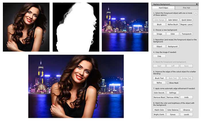 Darüber hinaus ermöglicht der Assistent „Hintergrund ersetzen“ das Maskieren feiner Haare. Beim Kopieren und Einfügen können gleichzeitig mehrere Ebenen aufgenommen werden, was bisher in Photoshop Elements und in Versionen von Photoshop vor CC 2018 nicht möglich war. Ein neues Histogramm XXL-Bedienfeld mit veränderbarer Größe bietet 16 Histogramme in 7 verschiedenen Stilen und ein Scopes-Bedienfeld mit 23 3D-Histogrammen. Neun Ebene-teilen-Funktionen erweitern die Bildbearbeitungsmöglichkeiten basierend auf verschiedenen Farbmodellen und Detailfrequenzen.