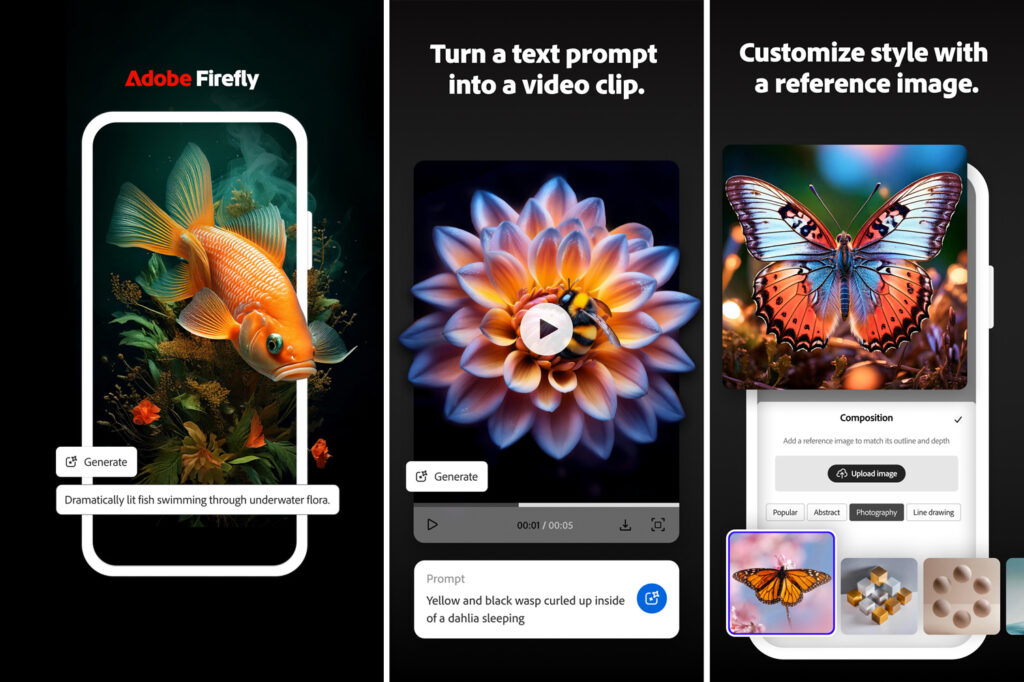 Firefly ergänzt das Angebot mobiler Apps von Adobe wie Photoshop, Lightroom und Adobe Express. Die Technologie hinter diesen Apps entspricht der der bekannten Desktop-Programme. Inhalte, die in der mobilen Firefly-App entstehen, synchronisieren automatisch mit dem Creative Cloud-Konto.