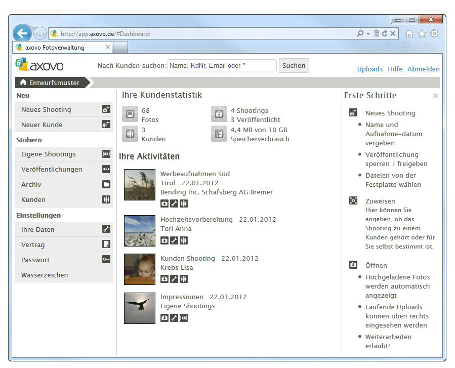 Das Webportal axovo.de bietet Fotografen die Möglichkeit, Bilder in einer Cloud zu archivieren, zu präsentieren und Bestellvorgänge abzuwickeln.