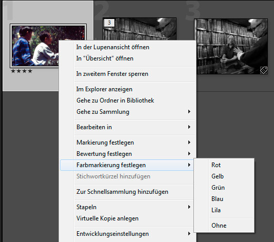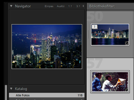 Es gibt noch ein nettes Feature, das die Übersichtlichkeit im Katalog ungemein erhöht. Mehrere Bilder lassen sich in Stapeln zusammenfassen, indem sie markiert werden und dann die Tastenkombination Strg+G (am Mac Ctrl+G) gedrückt wird. Eine seitliche Markierung am Bild zeigt dann an, dass sich dahinter ein Stapel verbirgt. Wird die Archivsuche genutzt, werden natürlich auch alle Bilder, die in Stapeln sortiert sind, eingeschlossen. Die Darstellung in Stapeln ist natürlich nur so im Katalog hinterlegt, am eigentlichen Speicherort der Fotos wird dadurch nichts verändert.