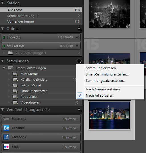 Adobe Photoshop Lightroom ist keine Software, die man nur ein bisschen benutzt. Schließlich gehört der RAW-Konverter zu den ambitionierten, und genauso ist die Bildverwaltung: gemacht, um damit zumindest mittelgroße Archive verwalten zu können. Die ersten 50.000 Fotos sind für die Software kein Problem, wenn es größer wird, macht es Sinn, das Archiv aufzusplitten. Wie das geht? Man legt einfach mehrere Kataloge an. Die Software bietet die Möglichkeit, den Katalog zu optimieren, wenn er erst sehr groß ist, aber das bringt nur kleine Abhilfe. Tatsächlich macht die Arbeit mit mehreren Katalogen Sinn, weil ältere Bilder meistens nicht so oft gebraucht werden. Wenn dann tatsächlich ein Griff ins Archiv nötig ist, kann dafür dann auch der nächste Katalog geöffnet werden. Der Katalog kann irgendwo gespeichert und gesichert werden, die Bilder müssen nicht an derselben Stelle liegen. Damit entfällt auch das Problem, wie Bilder auf mehreren Festplatten unter einen Hut gebracht werden. Denn dort können die Bilder sinnvoll gespeichert werden, meistens bei kleinen Archiven thematisch sortiert, wer sich überlegt, den Rest seines Lebens zu fotografieren, sollte seine Fotos besser nach Jahren und Monaten sortiert in Ordnern speichern oder ebenso durch Lightroom importieren lassen. Wer dabei Ordnung hält, hat schon die halbe Miete. Dann kommt noch die andere Hälfte und die ist fast noch wichtiger.