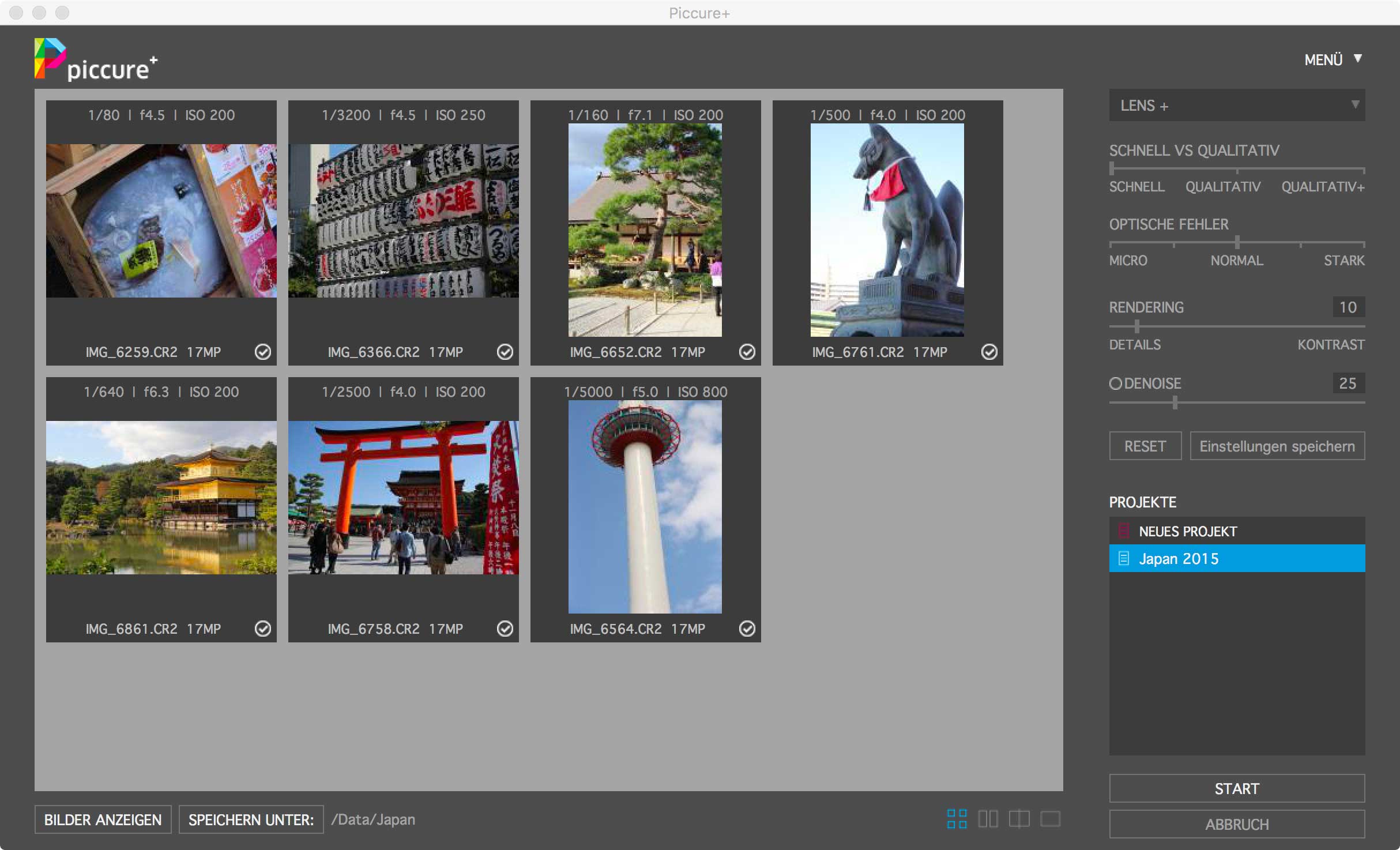 piccure+ ist als eigenständiges Programm mit Batch-Verarbeitung und Raw-Support verfügbar. Es lässt sich zudem in Photoshop, Lightroom, Photoshop Elements, Dxo Optics Pro und PhaseOne CaptureOne einbinden.