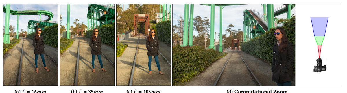 Die kalifornischen Forscher haben allerdings einen anderen Ansatz. In ihrem Beispiel macht der Fotograf eine Reihe von Aufnahmen und bewegt sich dabei immer näher an das Hauptobjekt heran, bis er neben ihm steht. Dabei wird die Brennweite beibehalten.