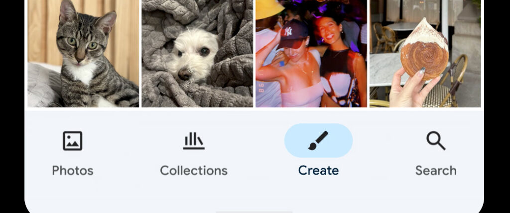 Sämtliche Kreativfunktionen führt Google nun im neuen Bereich „Create“ („Erstellen“) zusammen. Collagen, Highlight-Videos, Remix-Optionen und die genannten KI-Werkzeuge finden gemeinsam Platz. Der „Create“-Tab wird von Google laufend um neue, teils experimentelle Werkzeuge erweitert. Bislang verteilte Menüstrukturen entfallen zugunsten der neuen Übersicht, wodurch die navigation vereinfacht werden soll.