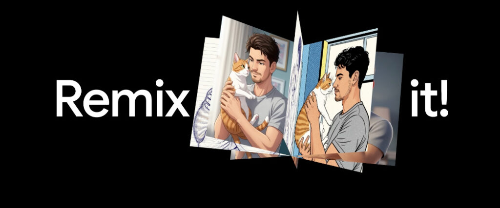 Die „Remix“-Funktion verwandelt Fotos in Sekunden durch unterschiedliche grafische Effekte. Wer das Bild seines Haustiers als Anime-Charakter oder eine Gruppenaufnahme als Comic sehen möchte, findet hier nun passende Auswahloptionen. Neben Anime und Comic stehen auch Skizzen oder 3D-Modelle zur Verfügung. Die Umsetzung erfolgt mit dem KI-Modell „Imagen“. Das Resultat eignet sich etwa, um Erinnerungen in neuem Look weiterzugeben – die Katze im Blaumann, der Geburtstagstisch als Pop-Art-Panorama oder die Hochzeit in skizzenhafter Anmutung.