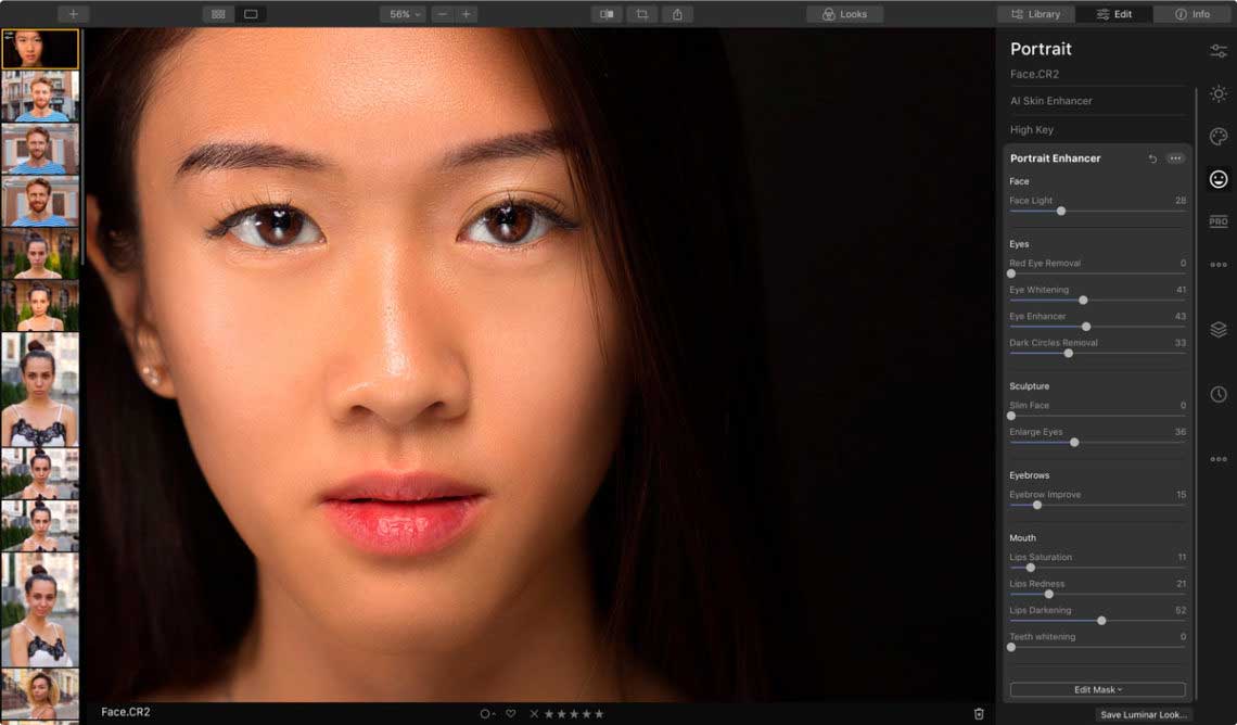 Portrait Enhancer ist eine Zusammenstellung von Werkzeugen, die helfen, das Foto jeder beliebigen Person auf eine natürliche und dennoch ansprechende Weise zu verbessern. Diese Werkzeuge sind brandneu in Luminar 4 und ermöglichen es nun, die wichtigsten Merkmale des Gesichts einer Person hervorzuheben und zu verbessern.