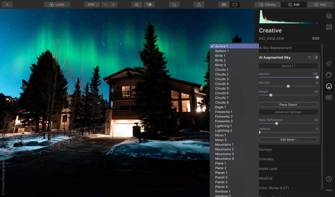 Mit der neuen AI Augmented Sky-Funktionen können Fotografen einzigartige, unverwechselbare digitale Kunstwerke erschaffen.