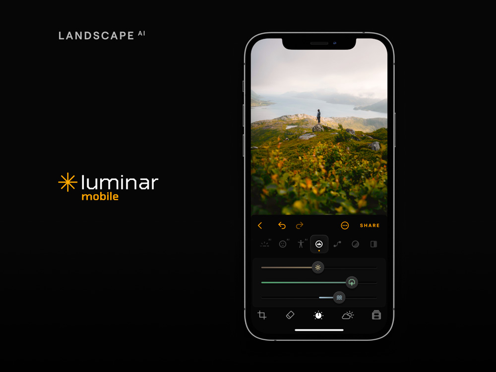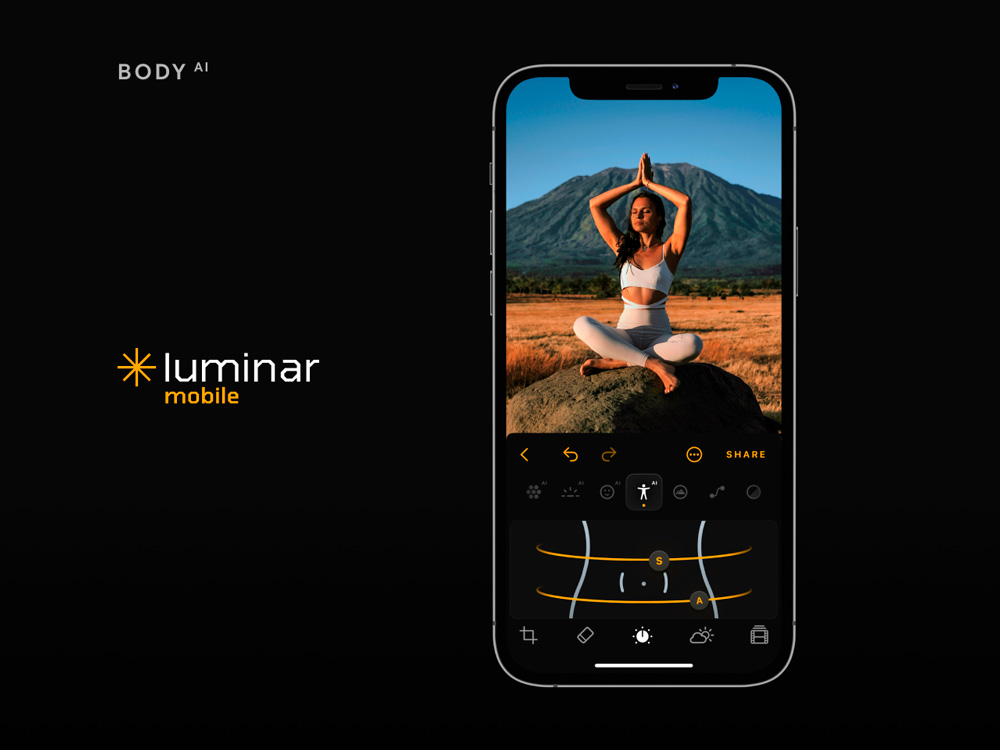 Luminar Mobile übernimmt die Bedienoberfläche und die KI-gesteuerten Funktionen wie EnhanceAI, SkyAI, StructureAI und RelightAI von Luminar für iPad, mit SkinAI und BodyAI werden aber zwei neue KI-gesteuerte Porträt-Werkzeuge hinzugefügt. Auf dem iPad wird zudem der Apple Pencil unterstützt.
