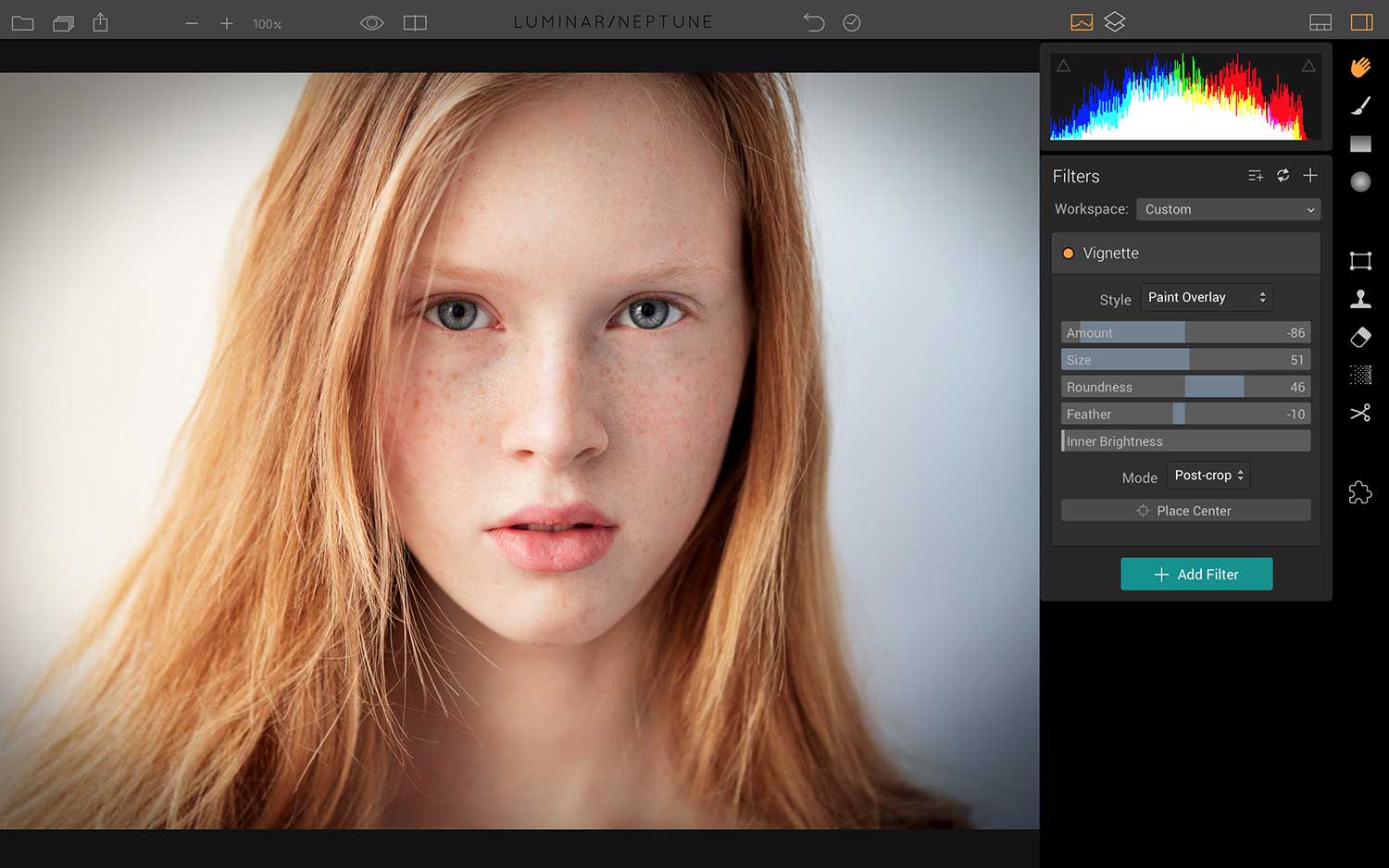 • Vignette Filter – Durch das Hinzufügen von Vignetten-Stilen, einem frei platzierbaren Zentrum sowie der Möglichkeit der Vignettierung vor oder nach dem Beschneiden wird dieses beliebte Fotowerkzeug noch flexibler.