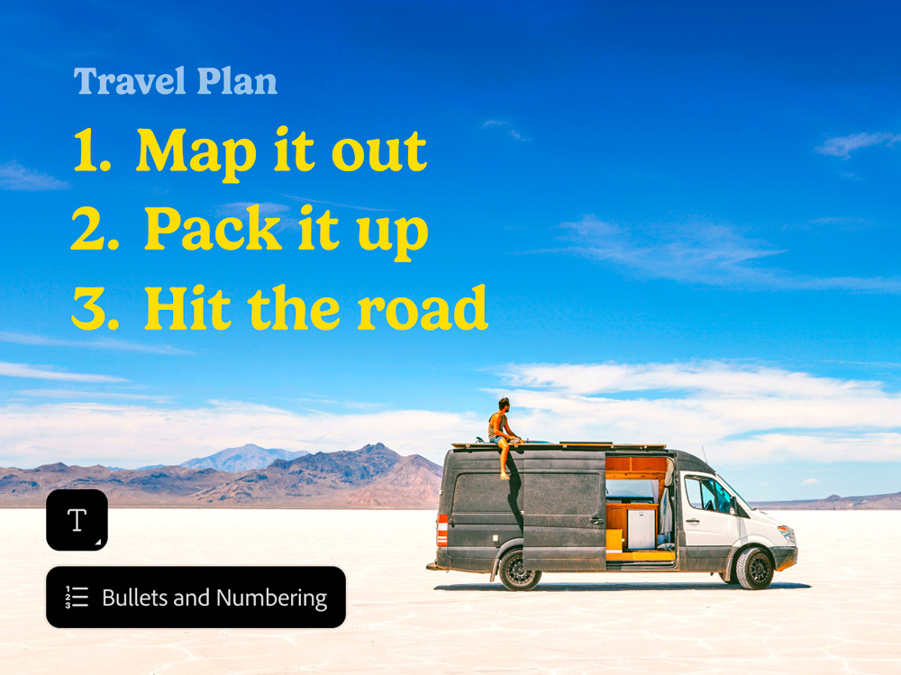 - In Photoshop ermöglichen Verbesserungen des Textwerkzeugs eine schnellere und weniger manuelle Erstellung von Aufzählungslisten und nummerierten Listen. Verbesserungen in der kontextbezogenen Taskleiste führen beliebte Einstellungen für die Arbeit mit Formen und das Drehen von Objekten ein.
