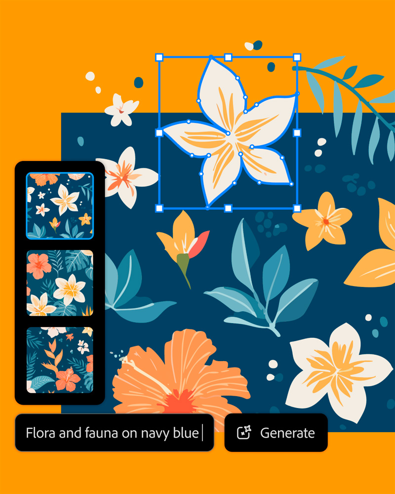 - Mit der erweiterten Text-to-Pattern-Funktion lassen sich anhand einfacher Prompts benutzerdefinierte Vektormuster für verschiedene Designprojekte entwerfen, generieren und skalieren.