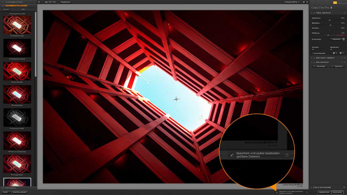In Lightroom Classic lässt sich die Nik Collection jetzt non-destruktiv einsetzen. Möglich wird das durch Nutzung des Formats „TIFF Multipage“, bei dem mehrere Daten in einer einzigen Datei gespeichert werden können: das Eingangsbild, die gespeicherten Bearbeitungsparameter der Nik Collection 3 By DxO und das Ausgangsbild.