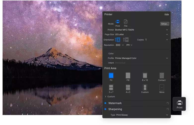 Resize AI bietet laut On1 neben der Bildvergrößerung auf 400% noch weitere Funktionen wie die Stapelverarbeitung, die Restaurierung alter, eingescannter Fotos und die Beseitigung von JPEG-Artefakten. Hinzu kommen diverse Optionen für die Druckausgabe, darunter das Kacheln eines Bildes für Teildrucke, die später zusammengesetzt werden, das Hinzufügen von Randbereichen für Gallery-Wraps (für das Umwickeln von Holzkeilrahmen) sowie das Einfügen von Wasserzeichen.