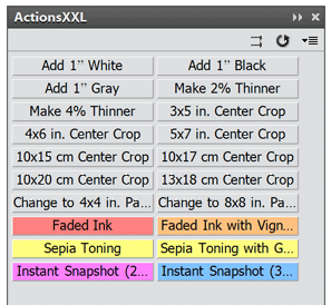 ActionsXXL erlaubt es Anwendern, die meisten Arbeitsschritte in Photoshop Elements aufzuzeichnen, inklusive Schritten, die mit den ebenfalls von The Plugin Site stammenden Erweiterungen ElementsXXL, LayersXXL und FilterHub durchgeführt werden. Mit bedingten Aktionsschritten könne Aktionen anhängig von 24 vordefinierten Bedingungen ausgeführt werden. Außerdem lassen sich Meldungen, Pfade, Skripte und Einstellungsebenen in Aktionen einfügen.
