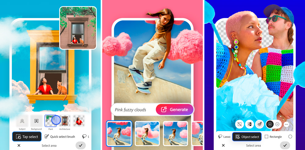 Photoshop Mobile für Android bietet einen Großteil der Funktionen, die Nutzer bereits von der iOS-Version kennen. In der aktuellen Version lassen sich Bilder flexibel kombinieren und bearbeiten, wobei Auswahl-, Ebenen- und Masken-Werkzeuge zur Verfügung stehen. Anwender entfernen oder ersetzen Objekte durch einfaches Antippen mit der intuitiven Funktion „Tap Select“. Störende Elemente verschwinden sofort mithilfe der Bereichsreparatur. Die auf Adobe Firefly basierende KI-Funktion „Generative Füllung“ ermöglicht es, neue Bildelemente hinzuzufügen oder bestehende Motive zu verändern. Darüber hinaus bietet die App Zugriff auf eine stetig wachsende Bibliothek kostenloser Adobe Stock-Assets. Präzise Auswahlen gelingen mit Werkzeugen wie der Objektauswahl und dem Zauberstab. Für die Bildverfeinerung stehen Funktionen wie „Entfernen“ und der Kopierstempel bereit. Ebenen und Effekte lassen sich gezielt mit erweiterten Füllmethoden und Einstellungsebenen steuern, was eine differenzierte Nachbearbeitung direkt auf dem mobilen Gerät ermöglicht.