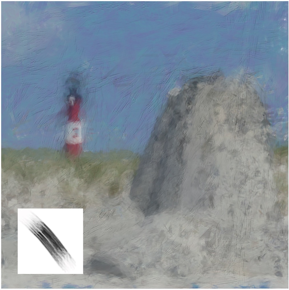 Nach dieser Vorbereitung orientieren sich die Werkzeugspitzen automatisch an der Pfadrichtung (und an den Objektkonturen), wenn Sie bei den Pinsel-Parametern die entsprechenden Einstellungen vorgenommen haben. Damit die Umsetzung einigermaßen „sauber“ ausfällt, sollte der »Winkel-Jitter« also sehr niedrig liegen, ebenso wie die »Streuung« (wenn überhaupt), und bei späteren Durchgängen die Größe der Werkzeugspitze klein sein.