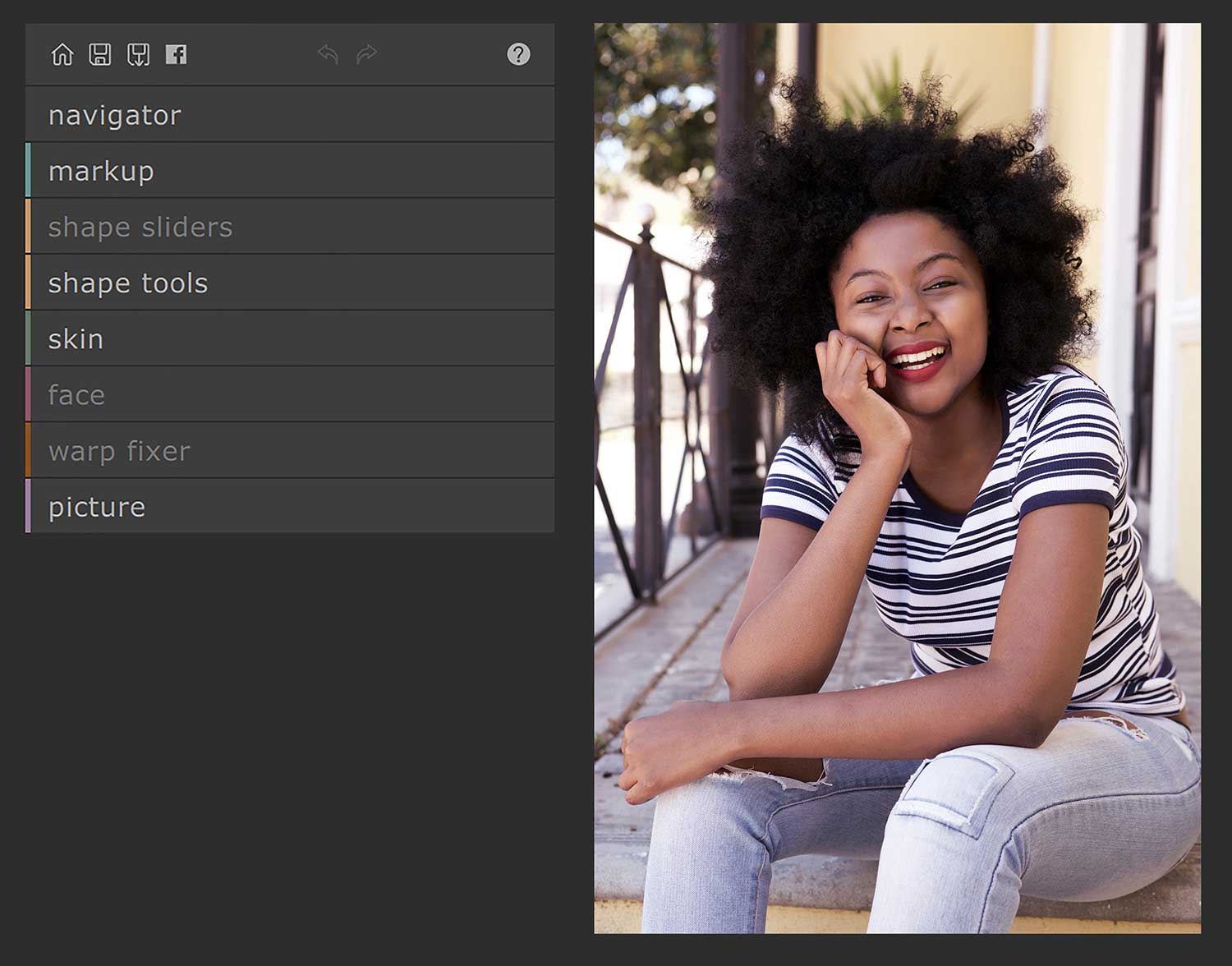 Die Software ermöglicht es, bei Ganzkörperfotos Merkmale wie Körperform, Statur, Größe und Haltung zu korrigieren sowie Hautunreinheiten und Falten zu retuschieren. Der Gesichtsausdruck lässt sich ebenfalls verändern. Körper-Merkmale lassen sich mit einfach zu bedienenden Reglern und verschiedenen Werkzeugen bearbeiten. Verdeckte Körperteile müssen manuell grob markiert werden, damit die Software sie erkennt.