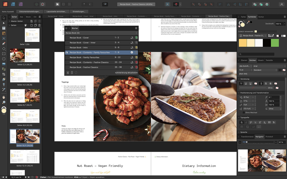 Bücher: Es ist jetzt möglich, mehrere Publisher-Dokumente als Kapitel zu einer langen Publikation mit automatischer Synchronisierung von Seitenzahlen, Inhaltsverzeichnis, Index und Stilen im gesamten Buch miteinander zu kombinieren. Diese Möglichkeiten sind ideal für Teamprojekte, da so jeder eigenständig an seinen Teilen arbeiten kann, bevor alle Komponenten zusammengefügt werden. Nur in Desktop-Versionen verfügbar.