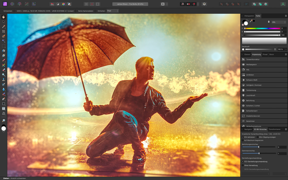 Import/Export von JPG XL Mit der neuen Exportoption für JPEG XL – einem Format, das sich vor allem in Webbrowsern immer mehr durchsetzt – können jetzt auch Dritte die Farben so sehen, wie Sie in Affinity Photo dargestellt werden.