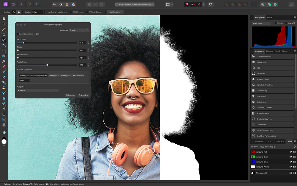 Anwender von affinity Photo profitieren beispielsweise von Funktionserweiterungen des Ebenen-Panels, des Zuschnittwerkzeugs, des Farbmischers, des Pinsel-Panels und beim Export. Die Option „Abwärts maskieren“, bisher nur im per Rechtsklick geöffneten Kontextmenü des Panels „Ebenen“ verfügbar, ist jetzt auch Bestandteil des Menüs „Ebene“. Das Maß- und Flächenwerkzeug, beide für Affinity Designer V2 neu entwickelt, sind jetzt auch in Affinity Photo und Affinity Publisher integriert. Das Platzierungswerkzeug lässt sich nun in die Werkzeugleiste von Affinity Photo einfügen. Für das Zoomwerkzeug von Affinity Photo sind jetzt über die Kontextleiste die gleichen Optionen in der Develop Persona verfügbar wie in der Photo Persona.