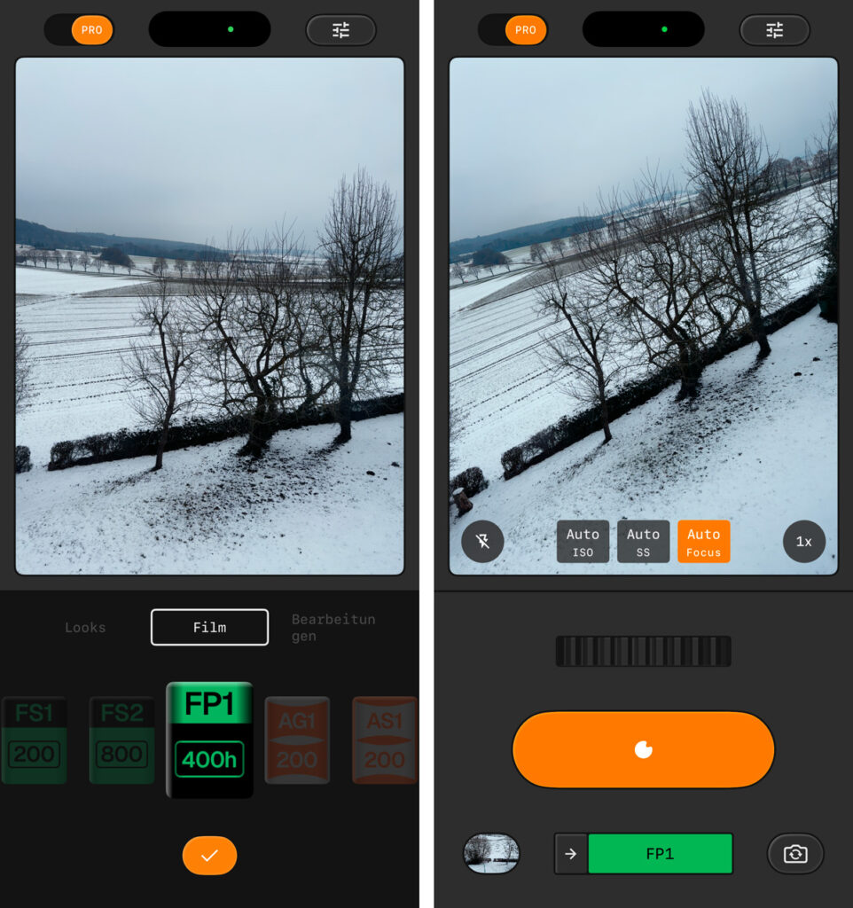 Das Herzstück des Kamera-Updates sind die Filmemulationen. Die integrierten Stile orientieren sich an klassischen Filmtypen wie Kodak Portra, Kodak Gold und Kodak E200 sowie Fujifilm Superia und Pro 400H. Hinzu kommen Agfa Optima und Scala, Polaroid 600 sowie Technicolor. Wer etwa mit dem Portra-Profil fotografiert, erhält jene warmen Hauttöne und zurückhaltenden Kontraste, für die dieser Diafilm in analogen Tagen bekannt war – das Ergebnis sieht im Sucher bereits vor dem Auslösen so aus, wie es später gespeichert wird.
