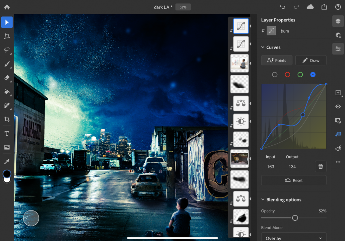 Auch Anwender der Mobilgeräte-Apps Fresco und Photoshop für iPad profitieren von Verbesserungen. So bietet Photoshop für iPad jetzt eine Kurvenfunktion für Farb- oder Tonanpassungen wie Kontrast, Belichtung, Sättigung, Glanzlichter, Schatten oder Farbbalance. Die aktuelle Programmversion ermöglicht Anpassungen der Tonwertkurven für alle Kanäle, Auswahlmöglichkeiten für mehrere Knoten sowie Funktionen, die es der App erlauben, zu erkennen, ob Anwender einen Knoten mit dem Finger oder Bleistift antippen und ziehen oder ihn auswählen möchten. Für ein späteres Update sind die aus der Desktop-Version bekannten, numerischen Eingaben und Pipettenwerkzeuge vorgesehen.