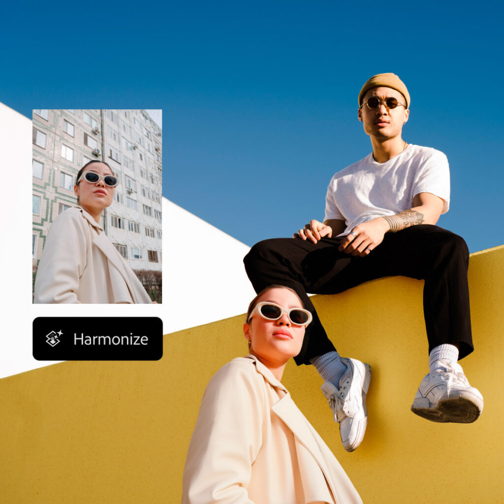 Das Werkzeug „Harmonize“ automatisiert weite Teile des Compositings. Es soll Lichtstimmung, Farbe und Tonwerte von Objekten oder Personen so angleichen, dass sie sich nahtlos in eine neue Umgebung einfügen. Wer etwa ein Porträt in eine andere Szenerie montiert, erhält im Idealfall ein realistisches Ergebnis, ohne jede Ebene manuell anpassen zu müssen. Die KI analysiert den Hintergrund und passt das eingefügte Motiv an – von der Farbtemperatur bis zum Schattenverlauf.