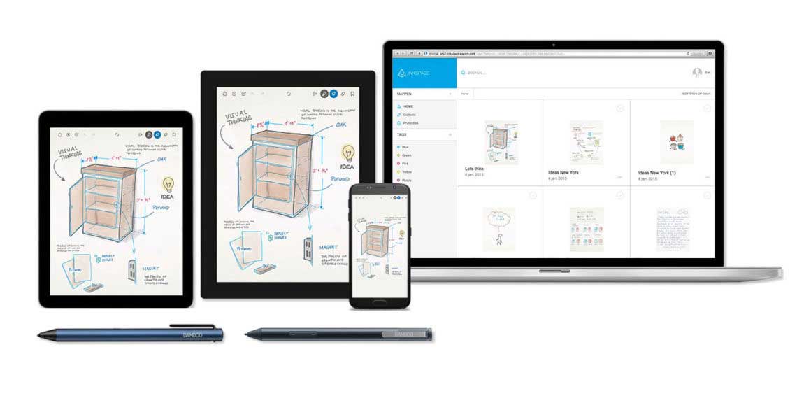 Bamboo Paper verwandelt Smartphones, iPads und Tablets in digitale Notizbücher. Die App eignet sich auch perfekt zur Verwendung mit einem digitalen Stift wie beispielsweise dem Bamboo Ink oder Bamboo Ink Plus, die mit einer großen Bandbreite an stiftfähigen PCs kompatibel sind. Auch mit dem Wacom One Stift-Display oder Wacom Intuos Stift-Tablett lässt sich die App hervorragend verwenden. Bamboo Paper ist so intuitiv, dass das Skizzieren, Zeichnen und Notizenmachen so einfach und unkompliziert wird wie mit einem Stift auf Papier oder einem Marker auf einem Whiteboard. Bamboo Paper ist erhältlich für Android, iOS und Windows und kann in den jeweiligen App Stores kostenlos heruntergeladen werden.