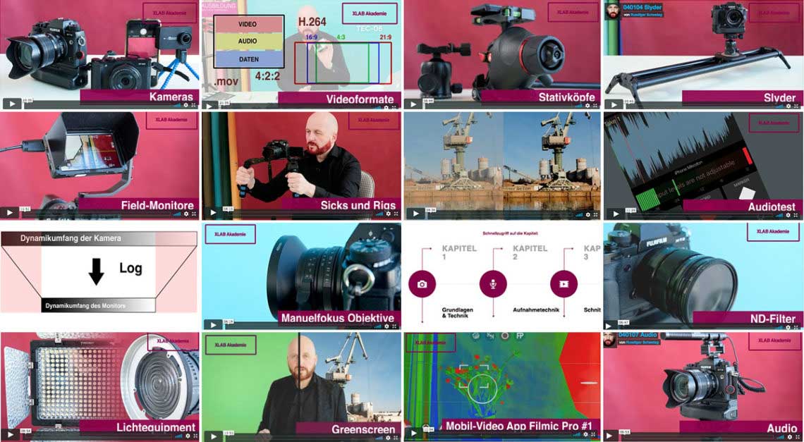 Der Selbstlernkurs besteht aus vielen Videos und Beispielen, die zeigen, wie Sie selbst perfekte Videos mit dem eigenen Equipment aufnehmen. Der Kurs richtet sich an Fotografen, Künstler und Unternehmer. Im Mittelpunkt stehen Produktionen mit professionellem Anspruch, etwa wenn die Videos im Online-Marketing zum Einsatz kommen sollen oder wenn es darum geht Veranstaltungen professionell zu dokumentieren. Der Videografiekurs ist ein Zusatzkurs zur Ausbildungsreihe Fotografie der XLAB-Akademie. Neben allen wichtigen theoretischen Grundlagen der Videoproduktion lernen Sie, mit vorhanden Kameras oder dem Smartphone Videos in hoher Qualität aufzunehmen. Zudem geht es darum, Equipment für Licht und Ton einzuschätzen und zu bedienen.