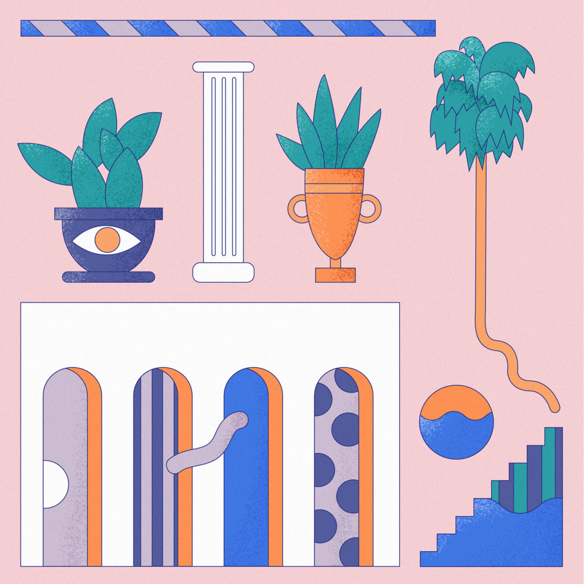 Daran orientieren sich Lilly und ihr Team in der täglichen Arbeit im Studio. Illustratoren, (Set-)Designer und Fotografen bringen hier ihre Expertise ein und schauen gleichzeitig den anderen über die Schulter, um dazuzulernen. Genau diesem Ansatz bleibt Lilly auch bei ihrer privaten Arbeit treu. Eine wichtige Rolle spielt Instagram für sie, wo sie sich mit Kreativen auf der ganzen Welt vernetzt, beispielsweise mit der Kanadierin Meghan Rose. Zwar haben sich die beiden Frauen noch nie getroffen, dennoch beschlossen sie, zusammenzuarbeiten und die Designs der jeweils anderen in ihrem Stil neu zu interpretieren. So entstand auch das folgende Artwork, das in Lillys Adobe Stock Portfolio zu finden ist.