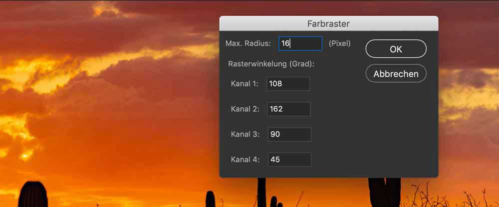 Die erste, direkteste Rastertechnik wenden Sie einfach in Photoshop an. Ein großes Plus dabei ist, dass Ihre Bilder ihre Farben beibehalten können.
