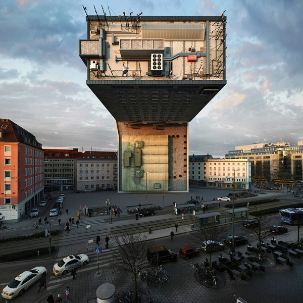 Für eines seiner neuen Projekte fotografierte Victor Enrich das Münchner Hotel Deutscher Kaiser, das gegenüber dem Hauptbahnhof steht. Anschließend verbog, verdrehte, kippte und zerstückelte er das Gebäude nach allen Regeln der digitalen Kunst. Um alles echt aussehen zu lassen, fügte er die passenden Schatten, Menschen, Autos und andere Elemente hinzu. Dabei kamen 88 neue, unmögliche Kompositionen heraus. Auch andere Münchner Gebäude waren vor dem Fotografen nicht sicher.