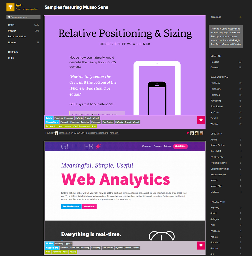 Diese Frage stellt sich Webdesignern und anderen Gestaltern immer wieder. Hillfe bei der Suche nach passenden Fonts will die Internetseite www.typ.io bieten.