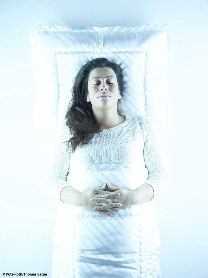 Als wir auf das Fotoprojekt aufmerksam wurden, bekamen wir Gänsehaut. Wir empfanden es auf den ersten Blick zunächst als makaber, sein „letztes“ Hemd überzuziehen, sich in einen Sarg zu legen und fotografiert zu werden. Auf den zweiten Blick aber ist dies ein mutiges Fotoprojekt vor dem wir inzwischen auch den Hut ziehen. Tiefgang ist angesagt, der für uns unter die Haut geht. Man muss sich intensiv mit dem Tod – auch dem eigenen – auseinandersetzen. Wer macht das schon gern, schieben wir doch den Gedanken an den (eigenen) Tod im Alltag am liebsten ganz weit weg. Wird dann auch noch, wie in diesem Fotoprojekt geschehen, der Tod visuell in einem einzigartigen Bild festgehalten, dann geht das an die Substanz. Der Tod des eigenen Ichs bekommt dann ein greifbares Gesicht. Das rüttelt auf und ob wir selbst die Stärke gehabt hätten, an diesem Projekt teilzunehmen, wissen wir nicht. Selbst die Bestatterin Hanna Roth, die tagtäglich mit dem Tod zu tun hat, ist beim Anblick ihrer Fotografie, wie sie im Sarg liegt, erschrocken. „Mit dem weißen Licht sehe ich tatsächlich aus wie tot“ so Roth. Ihr Foto hat sie daran erinnert, dass sie endlich ist und dass jeder Tag ein Geschenk ist, den man nutzen sollte.