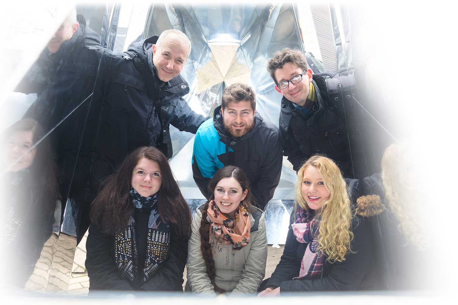 Die Kooperation war auch deshalb besonders produktiv, weil die Ausbildungswege und Vorkenntnisse der Teilnehmer unterschiedlich und komplementär waren. Alexandra Schotsch und Jean-Claude Dirckx studieren Medieninformatik und sind daher auch mit den Feinheiten der Bildbearbeitung vertraut, während einige ihrer Kollegen eine mehr fotografisch orientierte Ausbildung durchlaufen haben.