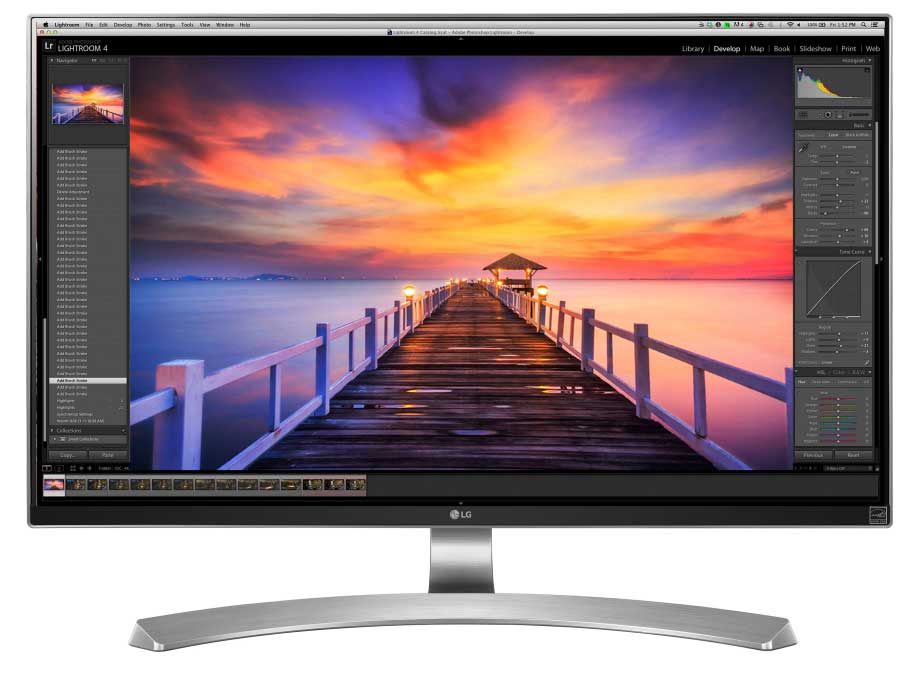 Eher auf Grafik- und Videprofis zugeschnitten, ist der LG 27UD88, LGs erstes Modell, das neben zwei HDMI-Anschlüssen auch über einen USB 3.0-Anschluss für die Bildübertragung und zum Aufladen eines angeschlossenen Laptops verfügt. Das 27-Zoll-Display ist Hardware-kalibrierbar und bietet verschiedene Farbpresets an, die vielfach von professionellen Anwendern genutzt werden, wie unter anderem die populären Rec. 709 sowie die SMPTE-C Broadcast-Standards. Für ergonomisches Arbeiten lässt er sich zudem in Höhe und Neigung flexibel einstellen und ins Hochformat drehen (Pivot-Funktion).