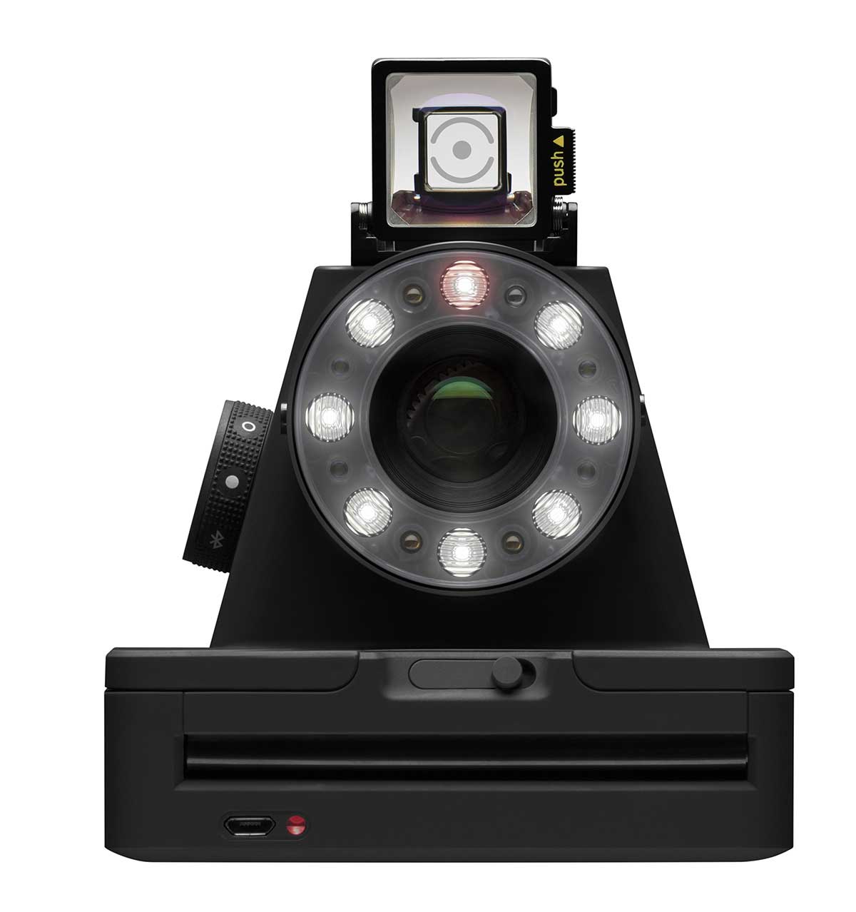 The Impossible Project hat die Polaroidkamera neu erfunden und präsentiert mit der I-1 eine analoge, Akku-betriebene Sofortbildkamera, die das ursprüngliche Polaroid-Format mit dem weißen Rand verwendet und sich per Bluetooth-Verbindung mit einer iOS-App oder WatchOS-App steuern lässt. Mit dieser können Belichtungszeit und Blende gewählt werden, sie bietet aber auch Funktionen wie Fernauslöser, Timer, Geräuschauslöser und Doppelbelichtung. Weitere sollen noch hinzukommen. Das Design der I-1 erinnert zwar an eine klassische Polaroid-Kamera, der um das Autofokus-Objektiv angebrachte Ringblitz mit 8 LEDs zeigt jedoch, dass moderne Technik zum Einsatz kommt. Der Blitz dient nicht nur der Ausleuchtung, sondern beherbergt auch die Infrarot-LEDs und -Sensoren für die Belichtungsmessung und die Entfernungs-Messung für den Autofokus. Außerdem werden die LEDs zur Anzeige der noch verfügbaren Aufnahmen und des Batteriestatus genutzt. Zur weiteren Ausstattung gehört ein zusammenklappbarer, magnetisch befestigter und abnehmbarer Sucher.