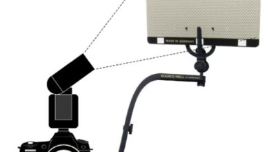Als unkomplizierte Alternative zu Softbox und Diffusor hilft ein kleines Zubehörteil aus Amerika dabei, hässliche Schlagschatten und unerwünschte Reflexe beim Blitzen zu vermeiden. Der Lightscoop wird einfach über den integrierten Blitz der DSLR-Kamera auf den Blitzschuh gesteckt und lenkt das Blitzlicht mit Hilfe eines kleinen Spiegels auf umliegende Wände und Decken. Der direkte Blitz wird dadurch in einen indirekten, weichen Blitz umgewandelt. Normalerweise funktioniert dies naturgemäß nicht im Freien – aber auch das lässt sich realisieren. Dazu muss sich der kreative Fotograf nur eine Kopfbedeckung mit Reflektorhalterung basteln.