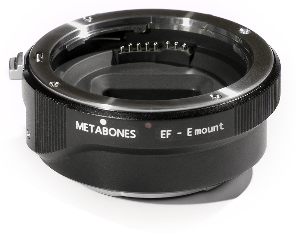 Der Zubehörhersteller Metabones erweitert das Angebot um einen Objektivadapter für das E-Bajonett von Sony NEX-Kameras, der diese mit den EF-Objektiven verbindet. Der Adapter stellt die Verbindung nicht nur mechanisch her, sondern überträgt auch die Steuersignale der Kamera für die Blendenwahl an das Objektiv. In Gegenrichtung werden die Objektivdaten an die Kamera übermittelt, die diese als Metadaten in die Bilddateien schreibt. Zudem wird der Bildstabilisator des Objektivs mit Strom versorgt. Einziger Wermutstropfen ist, dass der Autofokus in dieser Konstellation seinen Dienst verweigert. Es muss also manuell fokussiert werden. Zur Unterstützung beim Scharfstellen verfügt der Adapter über einen Knopf, mit dem sich die Blende kurzfristig voll öffnen lässt.