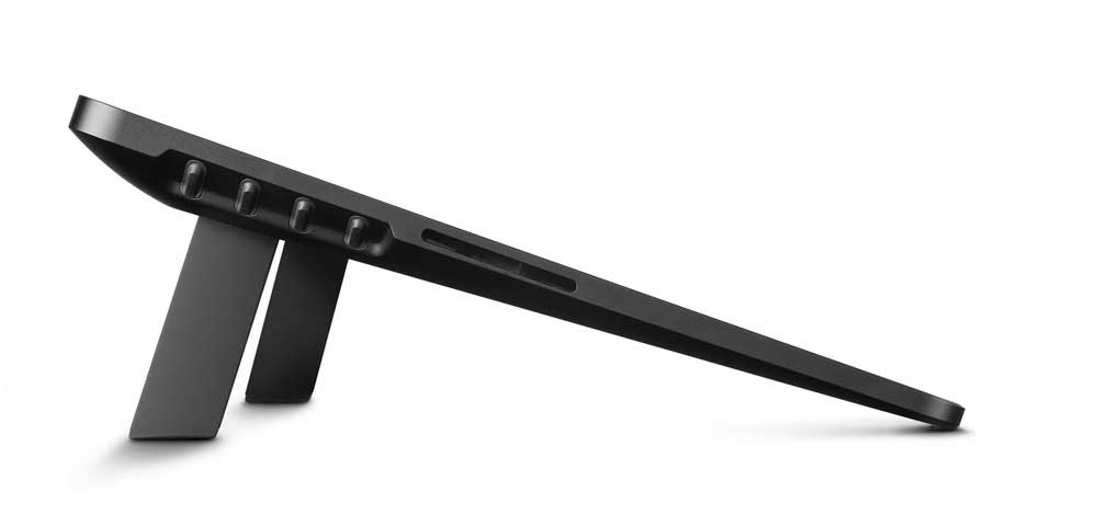 Wenn der integrierte Standfuß für einen Aufstellwinkel von 20° nicht ausreicht, kann einen optional erhältlichen, verstellbaren Wacom Standfuß oder dank VESA-Halterung auch einen Standfuß eines anderen Herstellers nutzen.