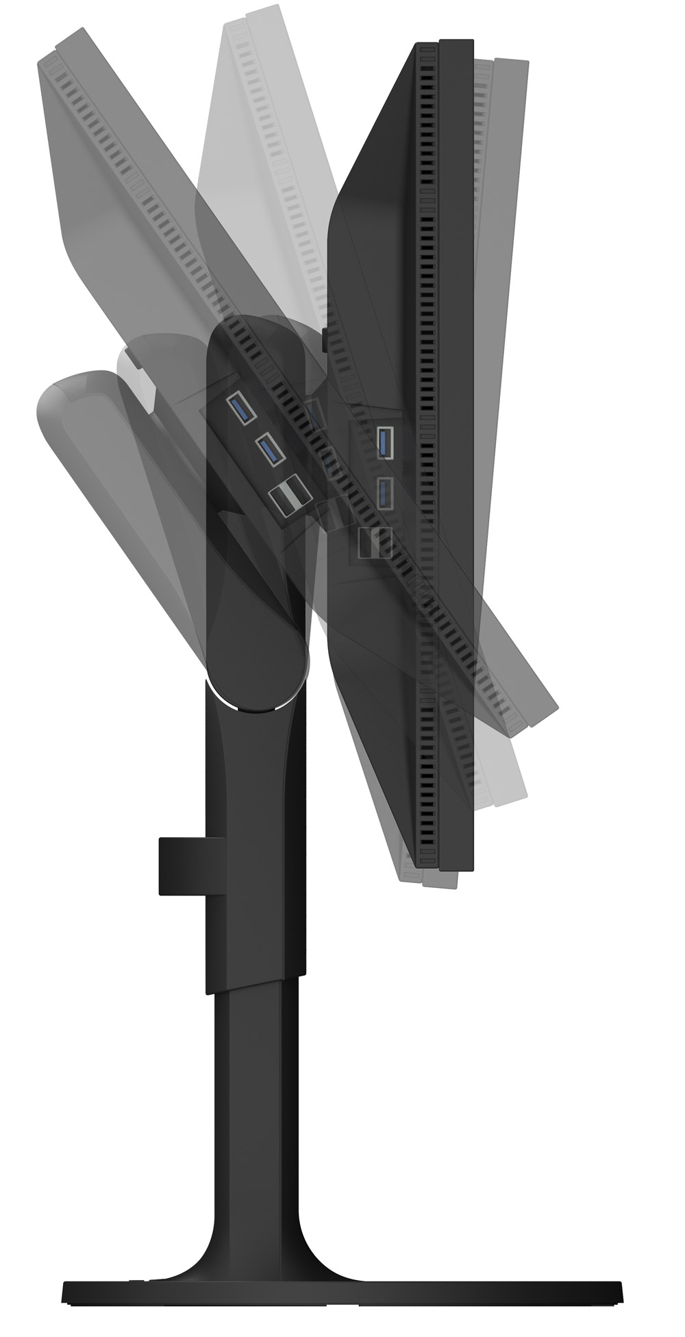 Der Monitor ist in der Höhe verstellbar und das Display kann nach vorne und hinten geneigt sowie ins Hochformat gedreht werden. Er kann über den USB-C- (DisplayPort-Signal und bis zu 70 Watt Power Delivery), den DisplayPort- oder den HDMI-Eingang an einen Computer angeschlossen werden. Für den Anschluss von USB-Geräten ist er mit einem USB-Hub mit zwei USB-3- und zwei USB-2-Downstream-Anschlüssen ausgestattet.