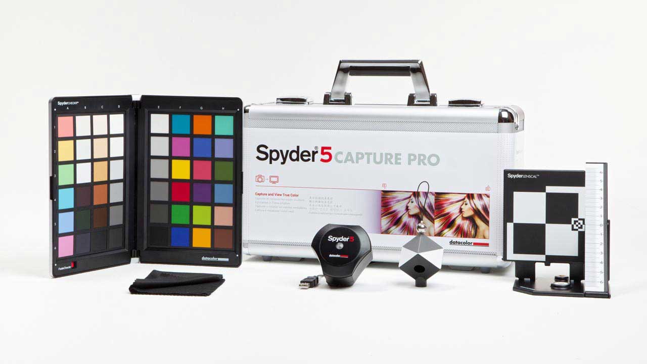 Das Paket, das im Metallkoffer geliefert wird, besteht aus den Komponenten SpyderLENSCAL, SpyderCHECKR, SpyderCUBE und Spyder5ELITE. SpyderLENSCAL ermöglicht die Autokokus-Kalibrierung von Kamera-Objektiv-Kombinationen. SpyderCHECKR und SpyderCUBE dienen als Referenzwerkzeuge bei der Bildbearbeitung für Kontrast, Weißpunkt und Farbwiedergabe. Spyder5ELITE kalibriert Bildschirme auf einen Branchenstandard hin und garantiert eine präzise Farbwiedergabe am Monitor für eine bessere Übereinstimmung von bearbeiteten Bildern und Ausdrucken.