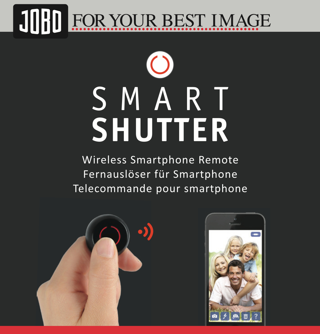 Mit einem Fernauslöser wie dem JOBO Smart Shutter ist das vermeidbar. Dieser kann wahlweise die Kamera auf bis zu 20 m Reichweite auslösen oder die Videoaufnahme starten/stoppen. Vor der Benutzung muss lediglich eine APP aus dem Internet geladen und installiert werden. Die Verbindung zwischen Smart-Phone und Selbstauslöser erfolgt über Bluetooth 4.0.