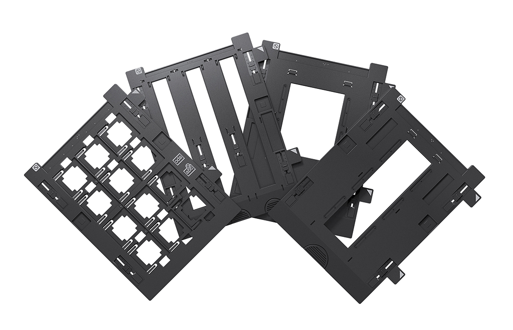 Die neu entwickelten Filmhalter der Perfection sind laut Epson robuster als bisher und erlauben eine präzise Anpassung der lichten Höhe von Durchlichtvorlagen über dem Scannerglas. Die Filmhalter besitzen zudem eine Anti-Newton-Ringplatte, durch die das Original ohne einen Luftspalt fixiert wird.